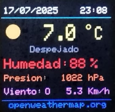 Hora en formato 24 horas y temperatura ambiente
